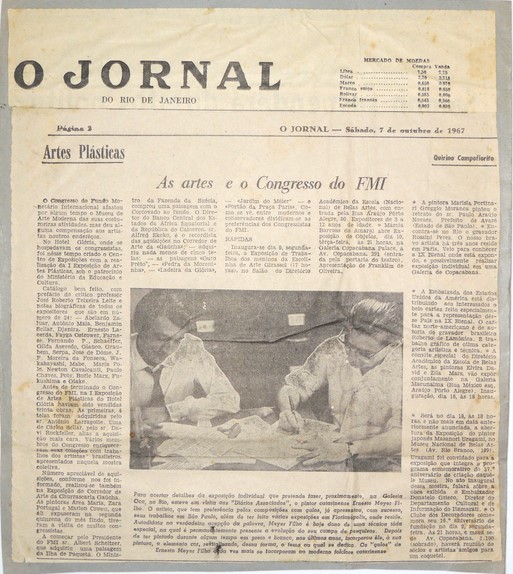Coleção Coleção Instituto Meyer Filho Item MF.02232 13/10/2022 por Michelle Witkowski   Documento MF.02232 Baixar Metadados Miniatura Nº de registroMF.02232Localização no InstitutoMAPOTECA 1 - GAV. 8 - PASTA 10ColeçãoIII. PeriódicosTipoJornalTítuloO jornal do Rio de Janeiro (RJ) 1967AutoriaNILocal*Rio de Janeiro (RJ)Data Data 07/10/1967 Década 1960 Ano 1967 DescriçãoMF.02232. Recorte da coluna artes plásticas intitulada "As artes e o Congresso do FMI" contém uma foto do artista Meyer Filho com outro artista (não identificado). Dimensão (26 x 29,6 cm)IndexadoresO Jornal do Rio de JaneiroSuportePapel jornalTécnicaImpressão sobre papel jornalBordaNão se aplicaColorNão se aplicaEstado de conservaçãoBomDanos causados porAmarelecimento | Manchas | Sujidades | Vincos e dobrasProcedimentosAcondicionado | Digitalizado | HigienizadoForma de aquisiçãoLicença de uso de direitos autorais gratuitaProcedência*Família Meyer FilhoRegistrado porMichelle WitkowskiData de registro13/10/2022Condições de ReproduçãoTodos os direitos reservados. Para utilização da imagem solicitar autorização ao Instituto Meyer Filho. Continue navegando MF.02268 MF.02277 Voltar para a página de itens