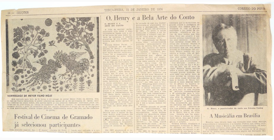 MF.02245.5: de matéria intitulada "Vernissage de Meyer Filho hoje" em 15/01/1974 (39,2 x 19,1 cm)