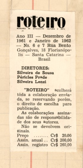 MF.02358.1 Recorte de revista aderido a uma folha pautada com destaque para matéria "Personalidades do ano em Santa Catarina". (27,6 x 41,2 cm)
